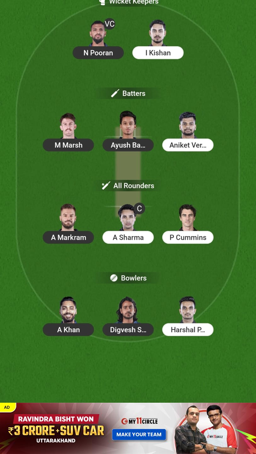 LSG vs SRH My11Circle Prediction