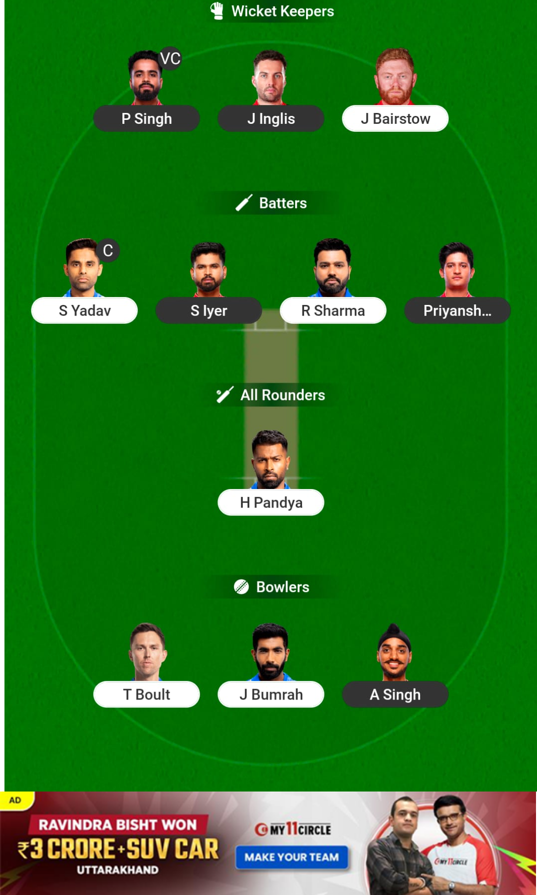 PBKS vs MI Indian T20 League Match Expert Advice: Prabhsimran Singh will be a top multiplier choice for the small leagues. Priyansh Arya will be a decent choice for the captaincy in the grand leagues.